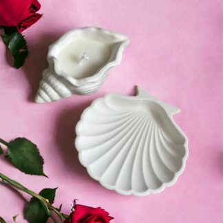 Deniz Kabuğu Ve Istiridye Set Beyaz Dekoratif Tabak/Takı Organizeri Mumluk